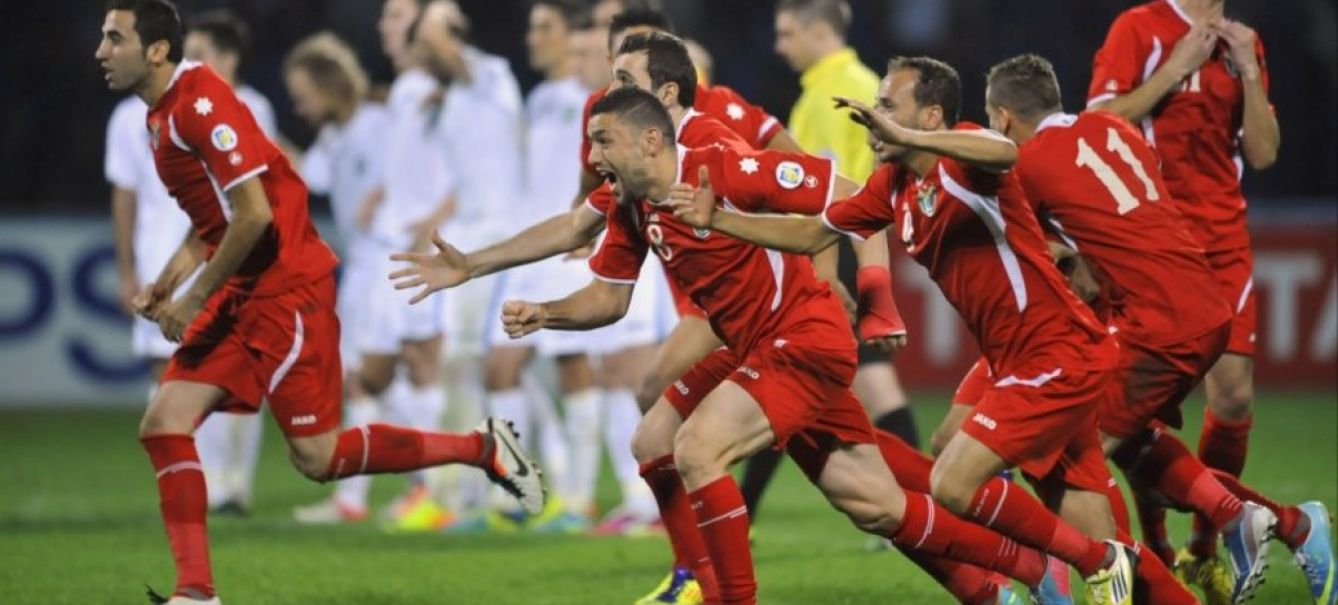 The Jordanian team celebrates its victory over the Uzbeks.