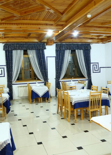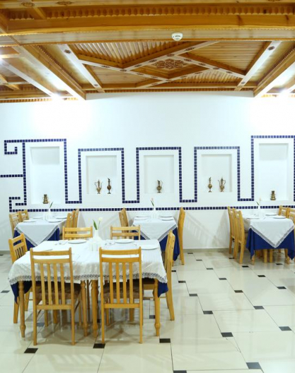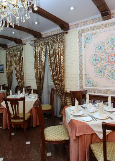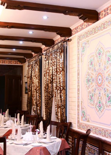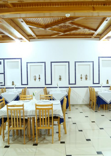 The only open-air restaurant in Samarkand decorated in oriental style with panoramic views of all the city's attractions (Registan, Bibi Khanum, Shahi Zinda, the Gur Emir) all at a glance.
