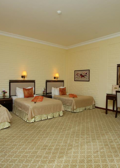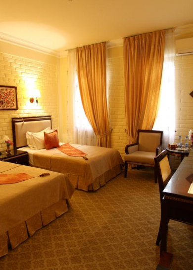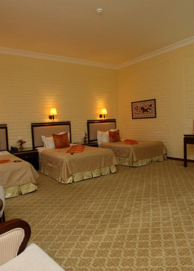 The Grand Samarkand Superior is designed for your comfort, with every room providing air conditioning, mini bar, bath, hair-dryer, satellite TV and IDD telephone. First class services including laundry service, room service, car rental, free safety deposit boxes, tour desk and translation services will make your staying even more comfortable. You`ll be in a warm and friendly atmosphere from the moment you arrive at our hotel. Our cheerful and friendly staff will do their best to make sure that you enjoy your staying in our tastefully furnished rooms, elegantly decorated in pastel fabrics with Uzbek artefacts comfortable.