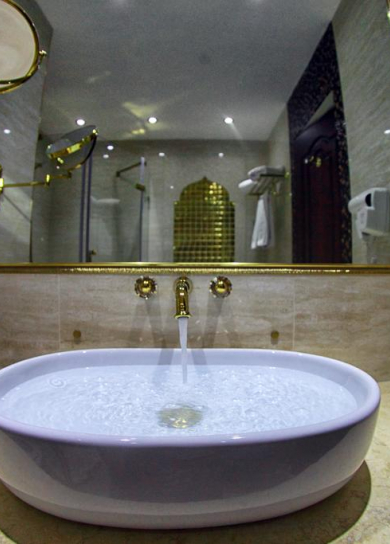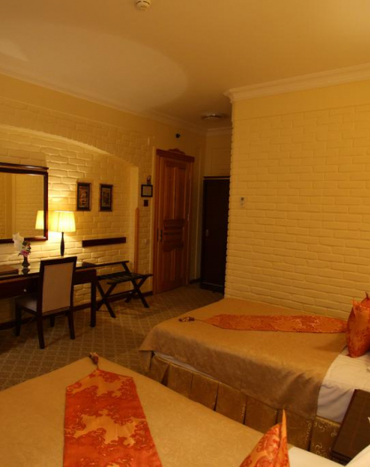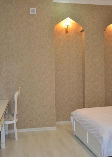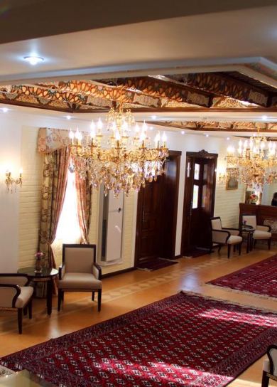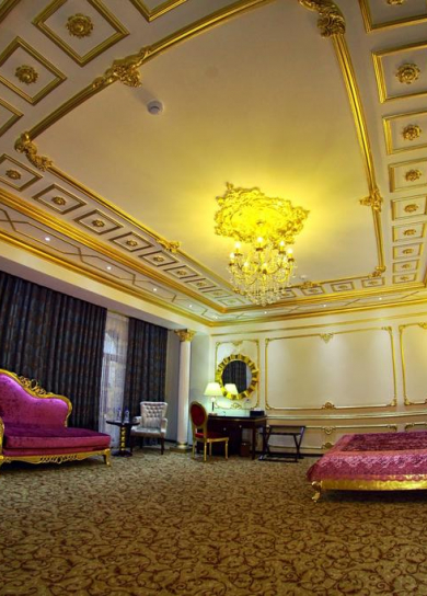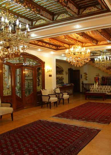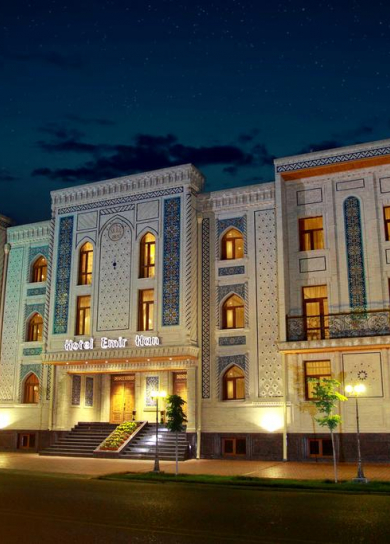 Luxury hotel Emirhan is situated 1.8 km from the Registan Square and 4.2 km from the airport. Emirhan hotel is decorated in neo-classical style combined with the luxury of the East. Emirhan hotel has 61 rooms, 125 seats which consist of one super suites, one suite, two junior suites, three triples, 36 rooms with twin beds and 18 rooms with large beds. Very comfortable, spacious suites are equipped with air conditioning, satellite TV, mini-bar, safe, telephone, hair dryer, etc. The bathroom features exquisite majolica, Syrian marble, gilded accessories and shifters. Every detail is made with luxury.