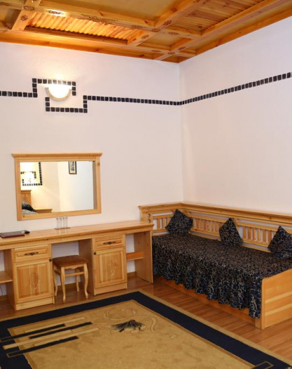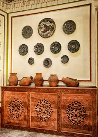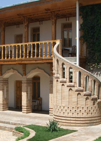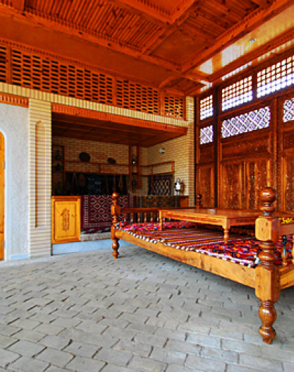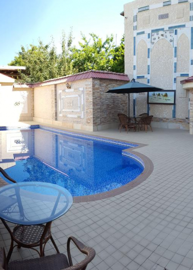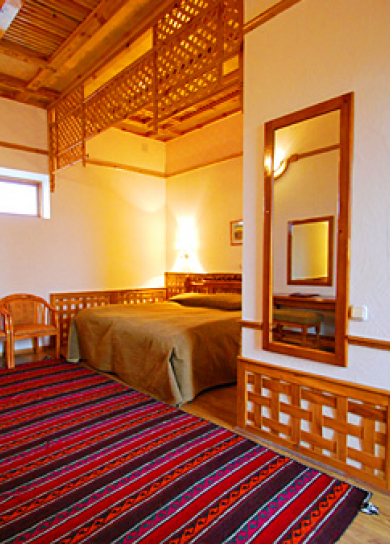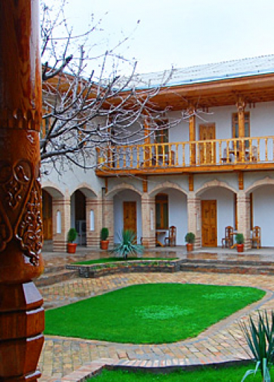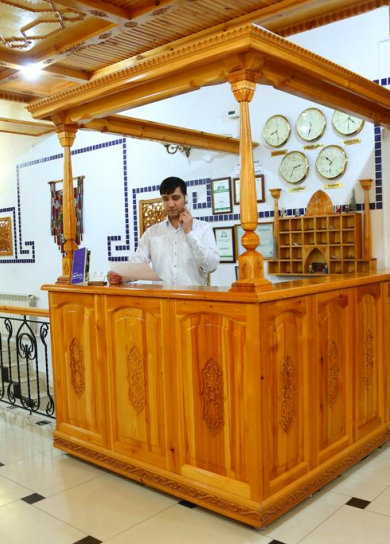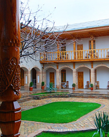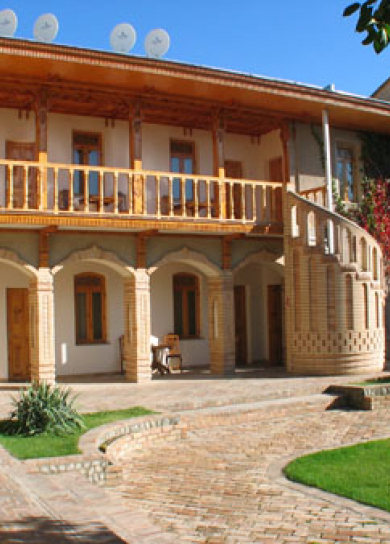 In this newly built private hotel you can see the best samples of the Uzbek wood carving. There are 26 rooms in the hotel. Also, the hotel has a small courtyard with national benches called "supa", where you can have breakfast or just relax and drink a cup of tea. The hotel is also famous by its cooking of Uzbek cuisine.