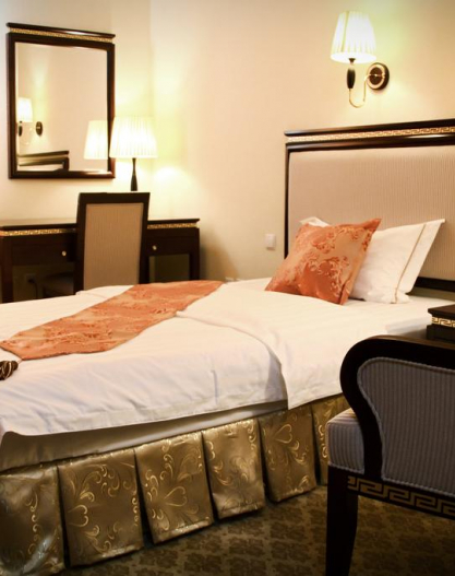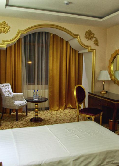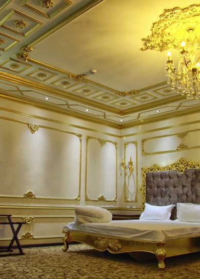 Four-star hotel «Regal Palace Samarkand» offers you 63 rooms of various categories including 4 luxury suites, 56 superior double rooms and 3 standard single rooms. 2 restaurants with a capacity of 80 to 120 persons, 2 conference rooms seating from 40 to 100 people and a courtyard for luxurious banquets for 250 people. Fitnets center "Olympia" with the art equipment from European manufacturers, indoor swimming pool "Spa Olympia" made at the European level, the Turkish bath was built by Turkish construction workers on the XV century drawings, as well as the Finnish sauna is equipped with everything you need. Hotel rooms are equipped with Italian furniture, long curtains, each room features a bed with orthopedic mattress, bright rugs, satellite TV with international channels, kettle, mini-bar, air conditioning and heating systems, all types of Internet access and the ability to connect any electronic equipment. Breakfast is available in the bright restaurant on the ground floor of the hotel, which offers dishes of European and Uzbek cuisine. Drinks are available at the lobby bar. The four-star Regal Palace Samarkand is located just 5 minutes away from Samarkand International Airport and 7 minutes by car from the center of the city of Samarkand, where you can find the world's most famous Registan Square and other unique attractions and landmarks of history and culture of Central Asia. The hotel has round the clock service Room Service, provided the equipment for people with disabilities and non-smoking.