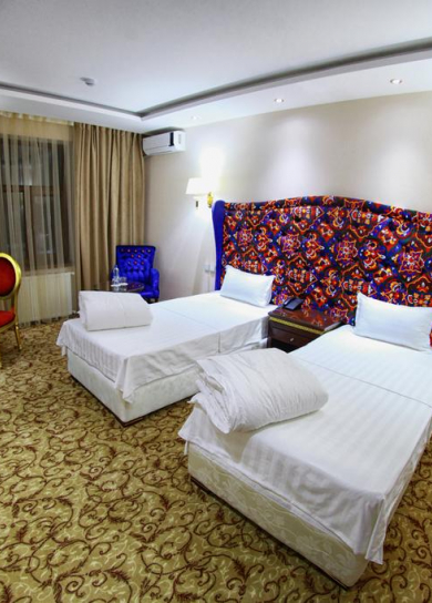 Hotel was built at 2008 and has 4-star status. Conveniently located in the Old Town, the Hotel is in immediate proximity to both business part of city and historical sights of the Old Town. Nearest airport: Samarkand international Airport. Airport is located in 6 km (15 min. drive) from the Hotel to the north–west. Nearestrailwaystation: “Samarkand” (15 min. drive)
