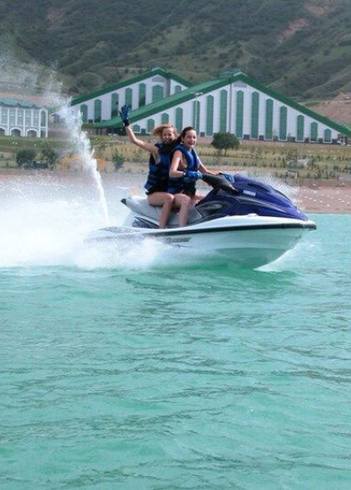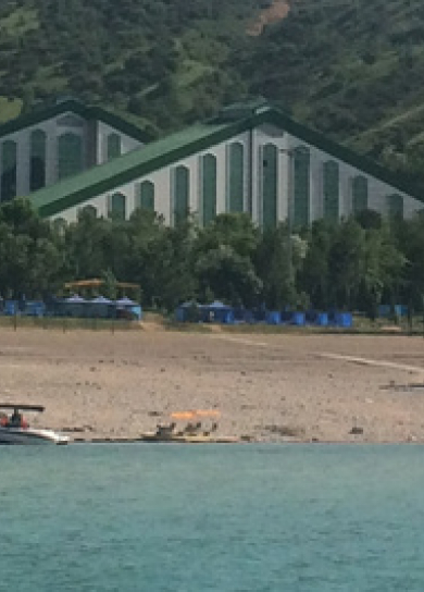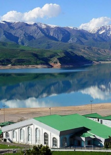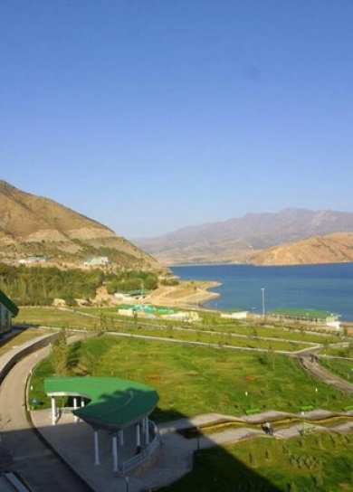 Three big pyramid-like 6-storey buildings of “Chorvoq Oromgohi” hotel are located on the left sloping bank of the Chorvoq reservoir, formed by the rapid Pskem, Kok-su and Chatkal rivers in the mountain canyon among the spurs of the Tien Shan mountains. Sandy beach, playgrounds.