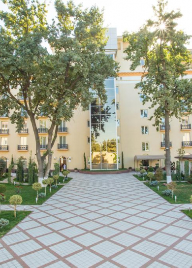 Built in 1994 this 14-storey international standard hotel was reconstructed in 2003. Located in the diplomatic district & financial heart of Tashkent, the hotel combines modern design with a touch of oriental style. Number of rooms – 192 (180 double rooms, 10 one-bedroom suites, 2 deluxe apartment). Dining facilities- 3 restaurants (70/75/50 pax) European and traditional Uzbek cuisine.