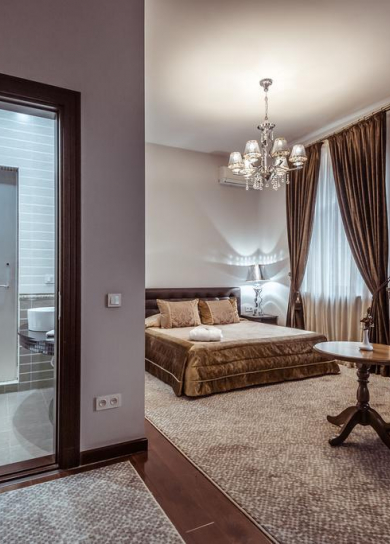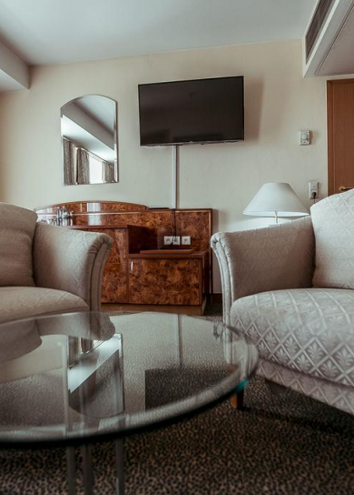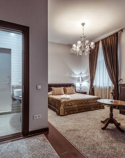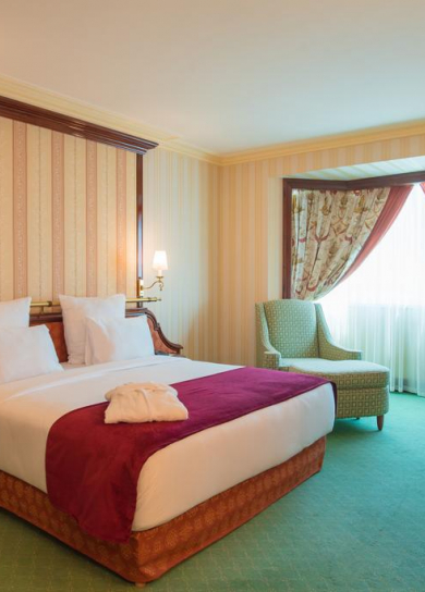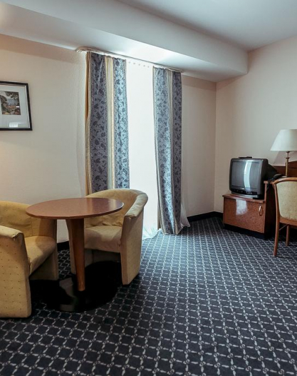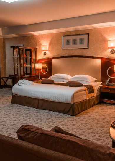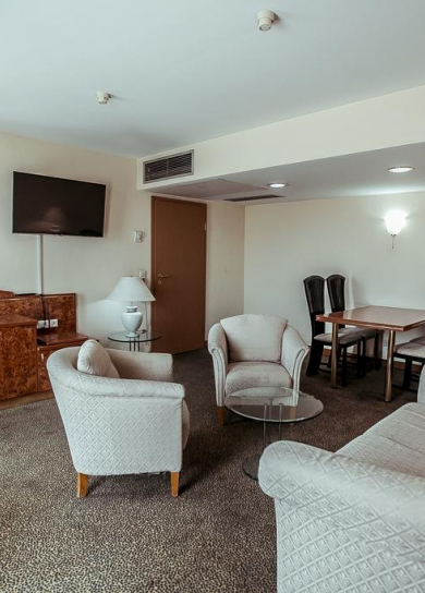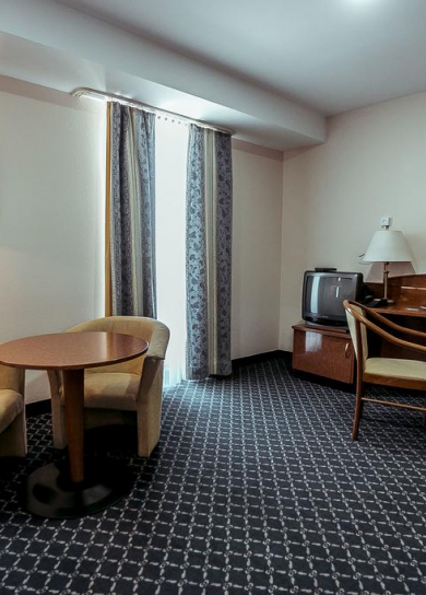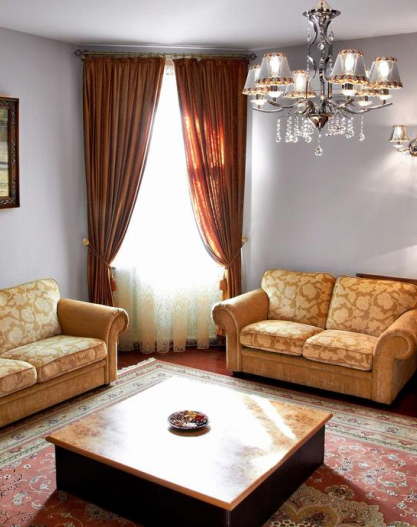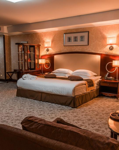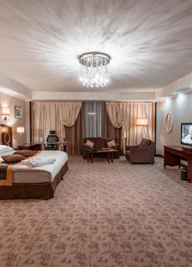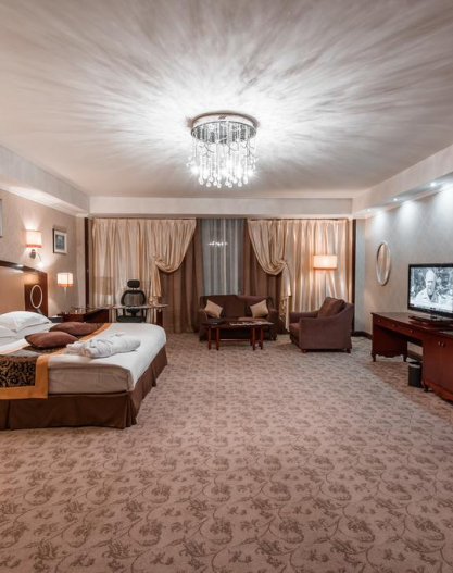 All rooms of the hotel guarantee Guests comfortable stay. The most spacious, big and magnificent bedrooms, and also access to ultramodern technologies are provided for your convenience. The design of rooms provides safety of living.