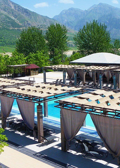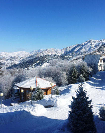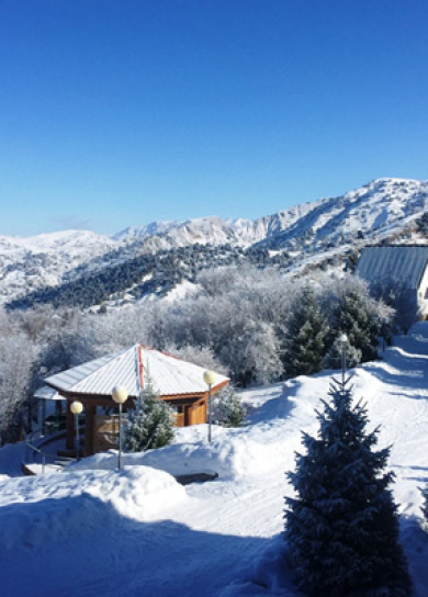 Nestling on the mountain slope of the Chimgan tract only 80 km from Tashkent, this three –storey hotel is an excellent base for exploring this beautiful mountainous area. Its 38 rooms (31 doubles, 6 luxe doubles, 1 VIP suite) are equipped with all modern comforts. The complex is an authentic oasis of peace also featuring 15 two-bedroom family units and 1 tree-bedroom VIP cottage with all necessary amenities. Dining facilities- a restaurant (60 pax) and a café (100 pax)