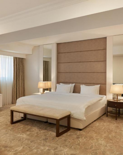 Number of rooms- 115 standard rooms, 68 junior suites and 17 senior suites, 4 VIP apartments and 4 specialized rooms for the disabled. Dining facilities- 2 restaurants (100/150 pax) National Uzbek and European cuisine.