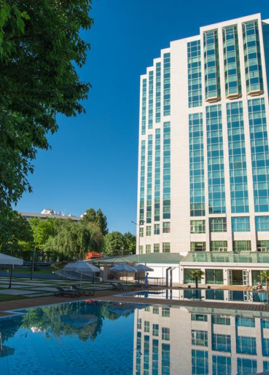 The luxury 5-storey hotel is located in the heart of the shopping and entertainment district and overlooks the Opera and Ballet Theatre. Built in 1948 it was reconstructed in 2003. Number of rooms - 250 rooms (194 King Beds, 50 Twin Beds, 5 One Bedroom Suites and 1 Presidential Suite). Dining facilities- a restaurant (150 pax). International cuisine.
