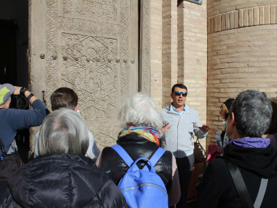 Time Program 08:00Breakfast at hotel 09:00Full day of city tour. Visit to Ismael Samani mausoleum (9-10c)-vault of Bukhara rulers' dynasty, Chor-Minor, Chashma-Ayub Mausoleums (14 c), Bukhara local bazaar. Visit to Old Bukhara: Poli-Kalon ensemble including Minaret (12c) , Mosque (15c), functioning Madrassah Miri-Arab (16 c), Amir- Alim-Khan Madrassah (14c), Taqi (trading domes), Kukeldash Madrassah (16c), 14:00Lunch time Lyab-i-Hauz (17c), Nadir Divanbegi (17c), Magoki Attari (16c), Ulug Beg (15c), Abdul Aziz (17c) Madrassahs; Visit to Registan Ensemble, Ark Fortress (16c) and Bolo-Hauz complex (18 c); Free time at leisure Folklore show and show of national clothes at Nodir Devonbegi madrassah 19:00Dinner Visiting national house for master class of plov (Uzbek traditional dish) -