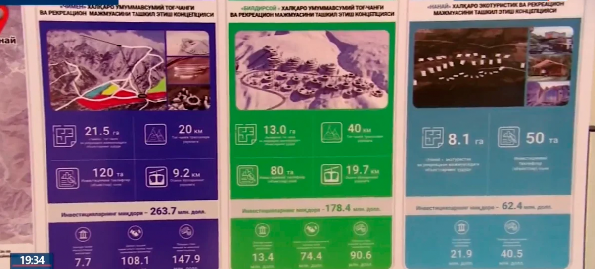 In the Tashkent region the local government in cooperation with foreign investors planning to create three international resorts - Chimgan, Beldersay and Nanay. This Projects will also be continued on Amirsoy and Yusufkhon areas. Over 40 km of tourist ski slopes and 100 types of tourist services will be created as part of these initiatives which is going to create three thousand jobs in hotels of different categories which can accommodate up to 25 thousands travelers, according to the Deputy Prime Minister Aziz Abdukhakimov.